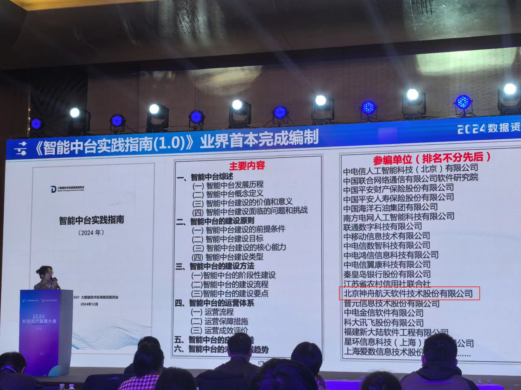 近期,中国通信标准化协会大数据技术标准推进委员会(以下简称:数标委)在北京举办了以“数据重塑价值 智能链接未来”为主题的“2024数据资产管理大会”。会上发布了神软公司参与编制的业界首本《智能中台实践指南(1.0版)》,该报告由数标委启动,以智能中台系列标准为参考,总结了智能中台建设实践方法论,为企业智能中台建设提供方法论指引。神软公司基于自主研发的AI平台产品“智汇AI开发平台”的建设和应用实践,进行提炼和总结,为《智能中台实践指南(1.0版)》编制及相关标准化工作贡献了力量。