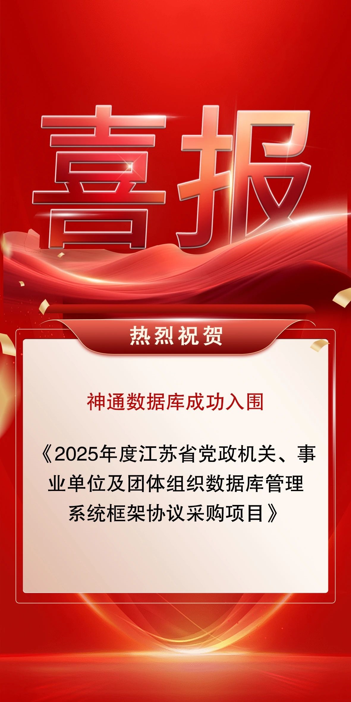 喜讯 神通数据库入围2025年度江苏省党政机关、事业单位及团体组织数据库管理系统框架协议采购项目