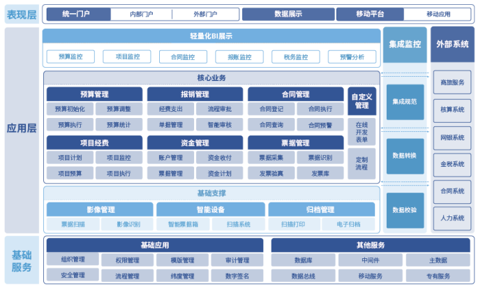 财金管控系统是为适应集团化企业“战略管控”、“财务管控”、“业务管控”的管理模式的现状研发的产品,拥有“高可用、高扩展、高易用”的产品特色,将移动互联、人工智能、大数据技术与财务信息化经验(系统功能、安全保密、模块划分、业务需求等)积累充分结合,为企业提供符合自身业务特点的开放型财务共享服务平台。